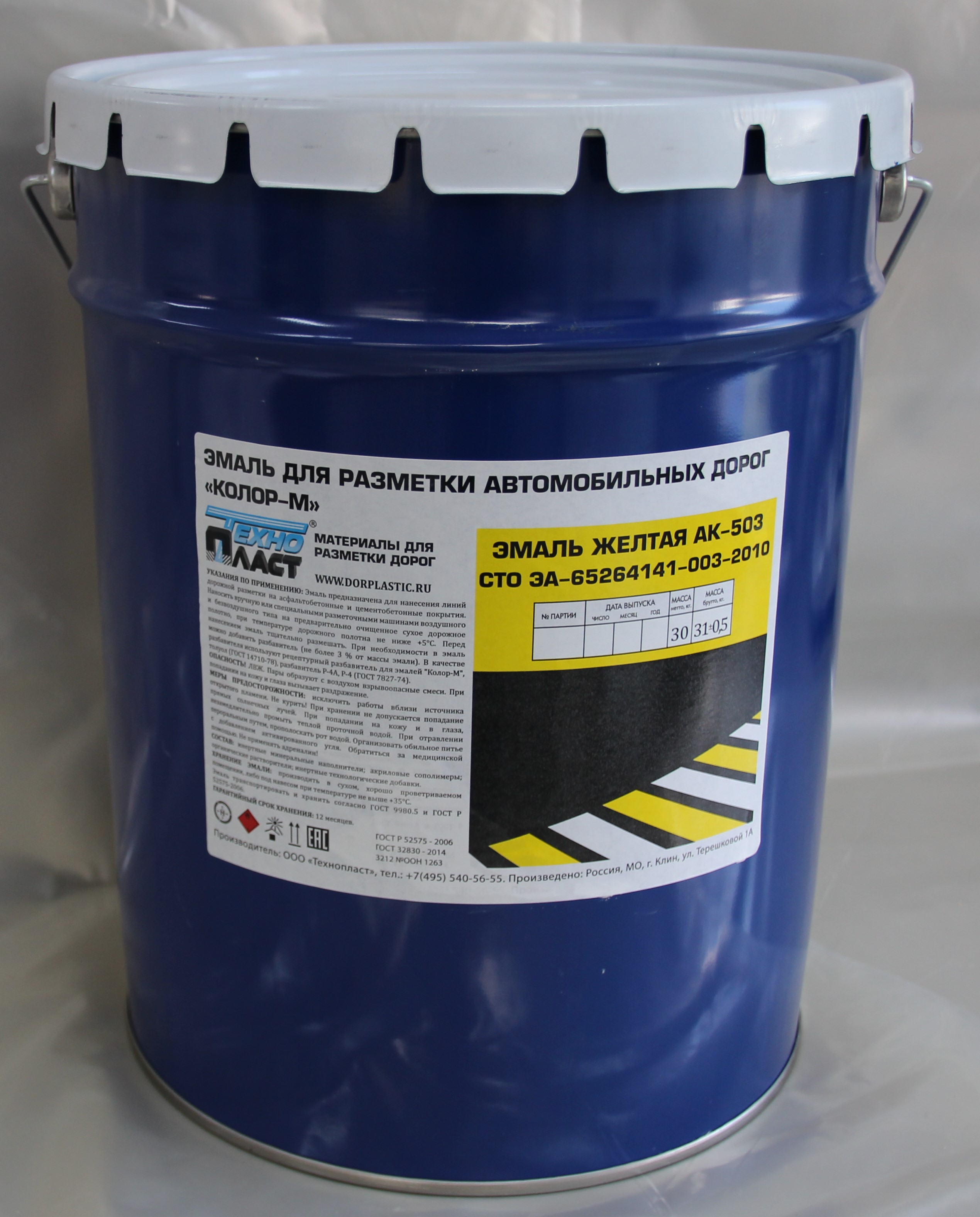 Эмаль краска для дорожной разметки АК-503 Желтая Фасовка 30 кг